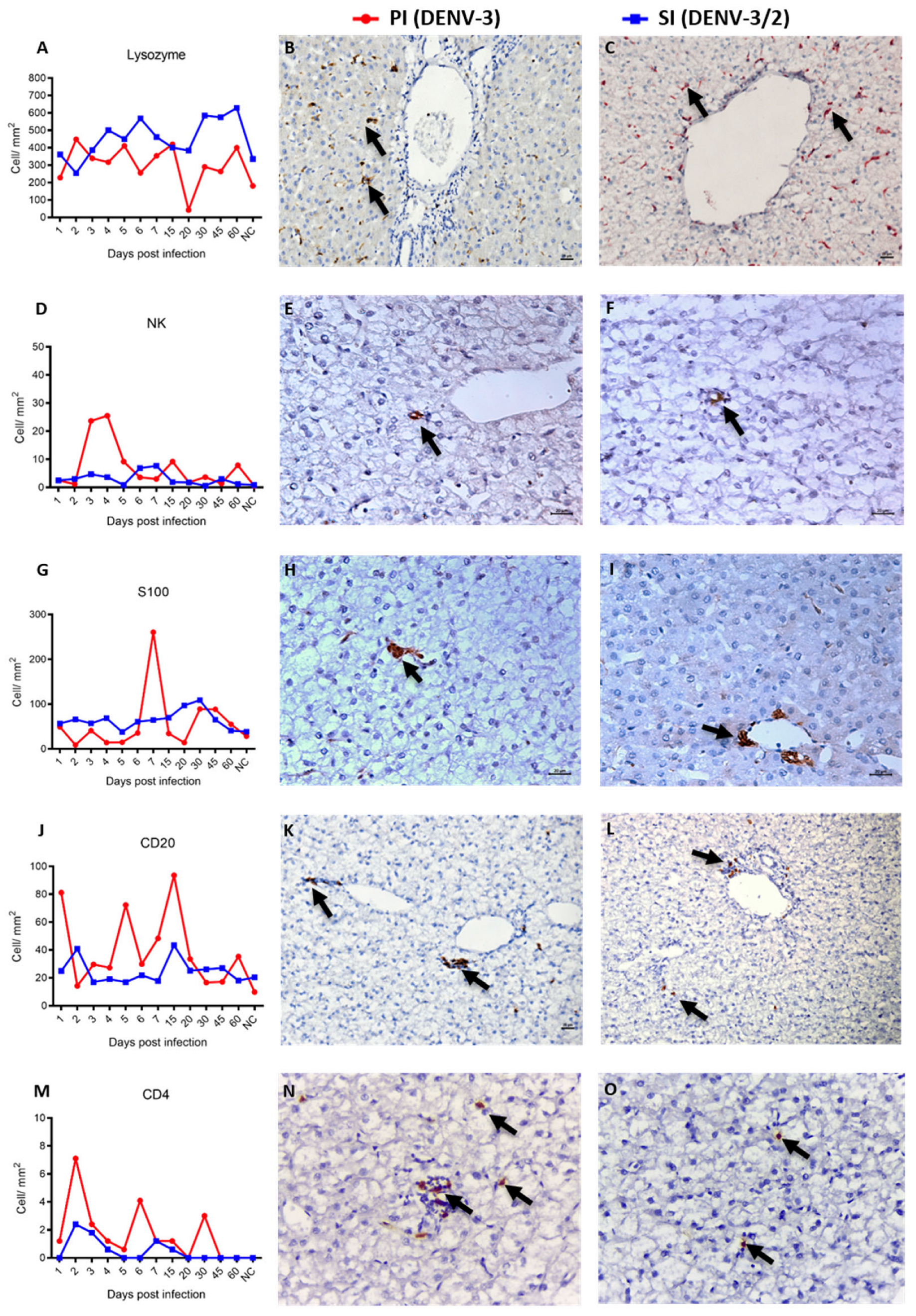 3.4. Characterization of Hepatic Immunophenotype and Cytokine Profile in Non-Human Primates Following Sequential Dengue Virus Infection