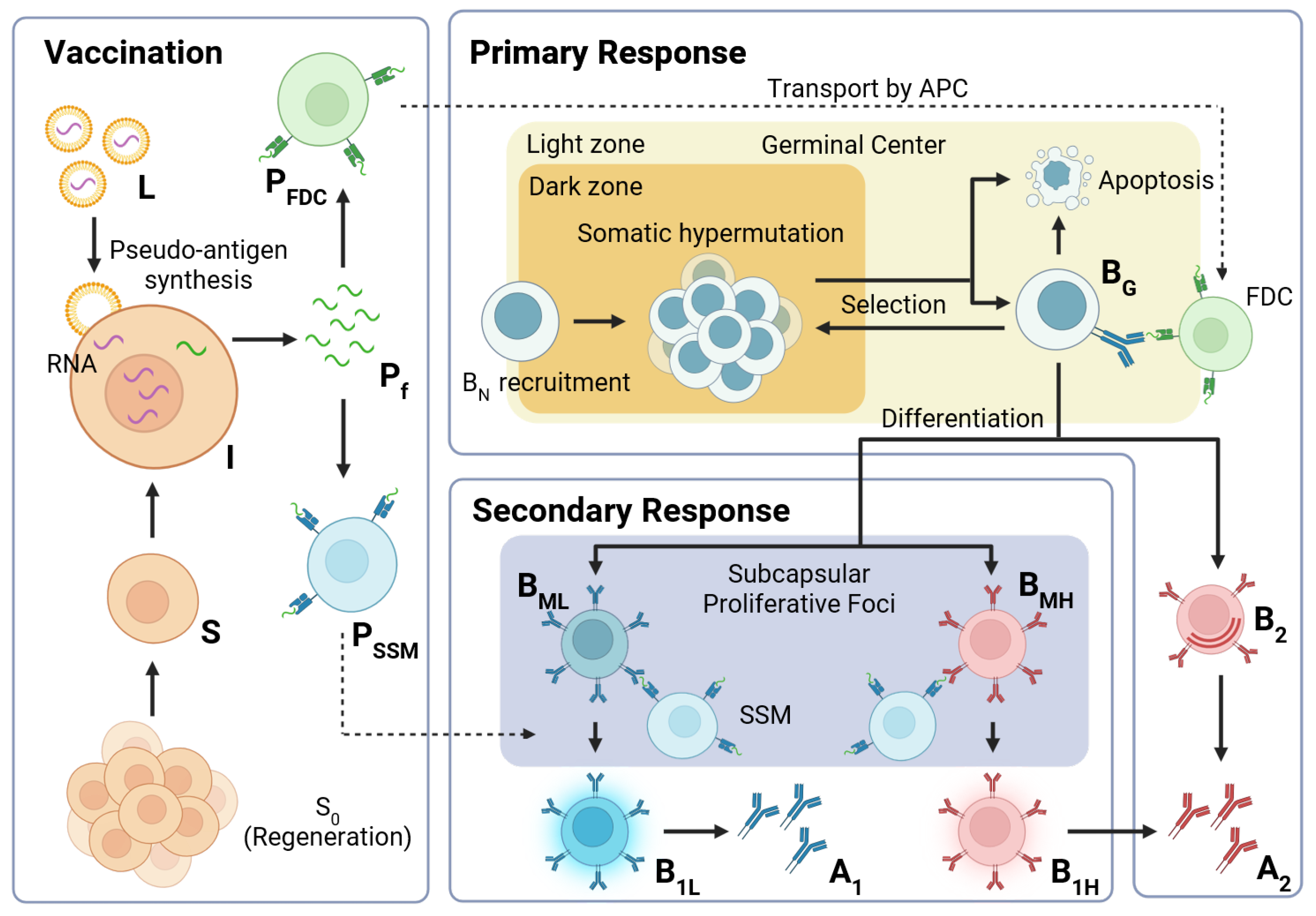 - Robert, P.A.; Arulraj, T.; Meyer-Hermann, M. Germinal centers are permissive to subdominant antibody responses. Front. Immunol. 2024, 14, 1238046. [Google Scholar] [CrossRef]