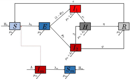The schematic diagram of the model is presented in Figure 1, and the state variables and parameters of the model are described in Table 1.