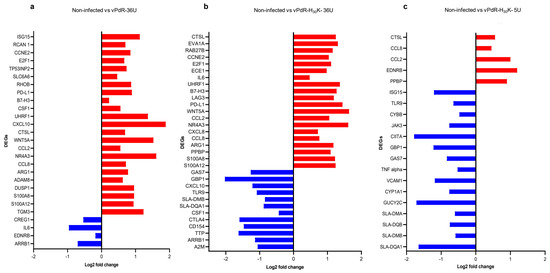 APA StyleCoronado, L., Wang, M., Bohórquez, J. A., Muñoz-Aguilera, A., Alberch, M., Martínez, P., Ruggli, N., Ramayo-Caldas, Y., & Ganges, L. (2025). Gene Expression Signatures of Porcine Bone Marrow-Derived Antigen-Presenting Cells Infected with Classical Swine Fever Virus. Viruses, 17(2), 160. https://doi.org/10.3390/v17020160