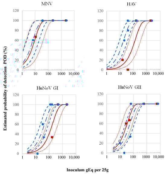 | Virus | Detection Methodology | LOD50 gEq per 25 g (CI95%) | LOD95 gEq per 25 g (CI95%) |