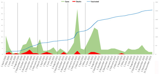 - World Health Organization. WHO COVID-19 Dashboard. Geneva: WHO. Available online: https://data.who.int/dashboards/covid19/cases (accessed on 1 November 2024).