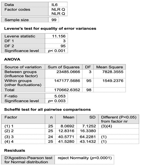 ANOVA test for quartiles of the IL-6 and neutrophil-to-lymphocyte ratio (NLR).