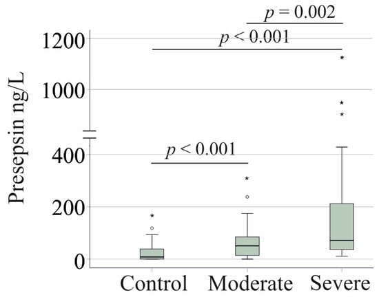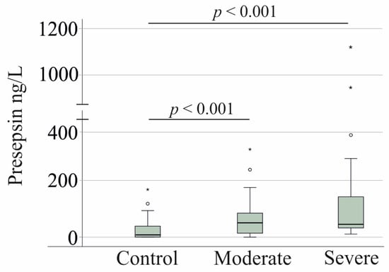 - Aliu-Bejta, A.; Atelj, A.; Kurshumliu, M.; Dreshaj, S.; Barsic, B. Presepsin values as markers of severity of sepsis. Int. J. Infect. Dis. 2020, 95, 1–7. [Google Scholar] [CrossRef]