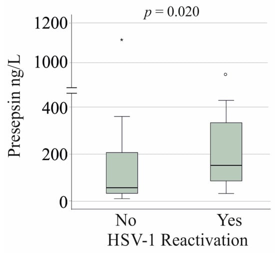 Mester P, Keller D, Kunst C, Schmid S, Krautbauer S, Müller M, Buechler C, Pavel V. Elevated Serum Presepsin Identifies Herpes Simplex Virus-1 Reactivation in COVID-19 Patients. Viruses. 2025; 17(3):357. https://doi.org/10.3390/v17030357