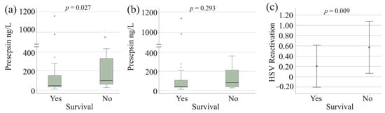 3.4. Serum Presepsin Levels of Patients with Superinfections and HSV-1 Reactivation