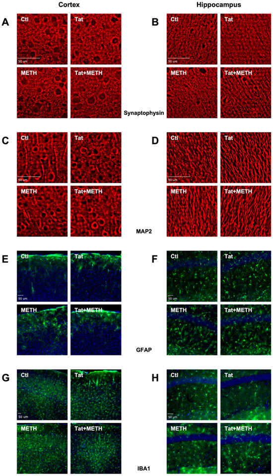 - Nookala, A.R.; Schwartz, D.C.; Chaudhari, N.S.; Glazyrin, A.; Stephens, E.B.; Berman, N.E.J.; Kumar, A. Methamphetamine augment HIV-1 Tat mediated memory deficits by altering the expression of synaptic proteins and neurotrophic factors. Brain Behav. Immun. 2018, 71, 37–51. [Google Scholar] [CrossRef]
