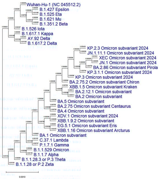 A phylogenetic tree of the N protein of the most representative SARS-CoV-2 variants was constructed in comparison with the original ‘Wuhan’ variant (Figure 1).