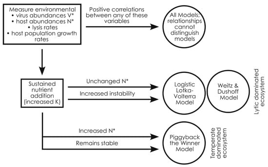 Figure 5). Ultimately, the ability to differentiate between these models using the tractable method of nutrient addition allows researchers to better describe the conditions favorable to lytic and temperate infections and to better predict the effects of viral infection in nature.