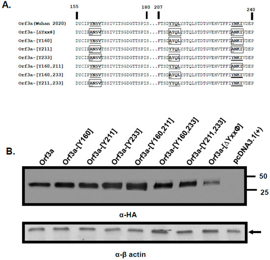 3.1. The ORF3a Has More than One Potential Tyrosine-Based Sorting Motif