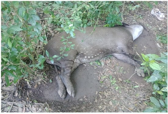 - Quse, V.; Fernandes-Santos, R.C. (Eds.) Manual Veterinario del Tapir, 2nd ed.; IUCN/SSC Tapir Specialist Group (TSG): Gland, Switzerland, 2014; p. 165. [Google Scholar]