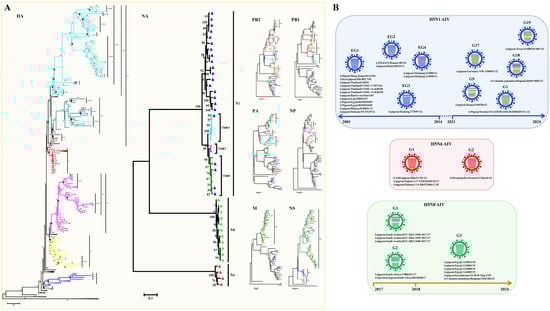 The following supporting information can be downloaded at https://www.mdpi.com/article/10.3390/v17040585/s1, Table S1: AIV strains included in the phylogenetic trees.