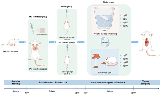 Zeng, X.; Zhang, C.; Shi, J.; Ji, X.; Wang, K.; Li, L.; He, Q. Establishment and Evaluation of Fatigue Mice Model in the Convalescence Phase of Influenza A. Viruses 2025, 17, 593. https://doi.org/10.3390/v17050593