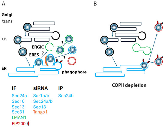 - Ge, L.; Schekman, R. The ER-Golgi intermediate compartment feeds the phagophore membrane. Autophagy 2014, 10, 170–172. [Google Scholar] [CrossRef]