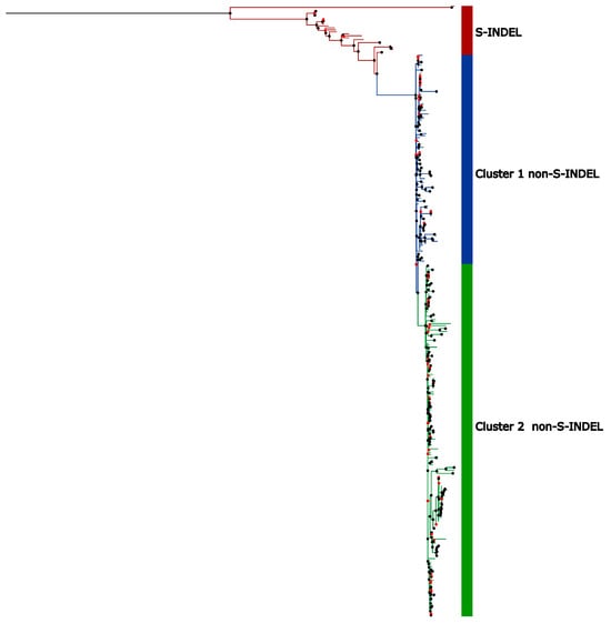 Using the default parameters, sequence alignment was performed using MAFFT V7.490 [39]. The sequences were trimmed by removing the 5′ and 3′ UTR regions and only the coding regions of the genomes were used in our analyses. Sequences were classified as the S-INDEL or non-S-INDEL strain based on the presence of insertions and deletions at specific positions in the coding region of the Spike protein, as described by Wang et al. [8].