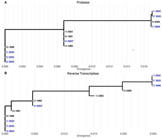 - Marcelin, A.-G.; Soulie, C.; Wirden, M.; Barriere, G.; Durand, F.; Charpentier, C.; Descamps, D.; Calvez, V. Emergent resistance-associated mutations at first- or second-line HIV-1 virologic failure with second-generation InSTIs in two- and three-drug regimens: The Virostar-1 study. J. Antimicrob. Chemother. 2025, 80, 95–101. [Google Scholar] [CrossRef] [PubMed]