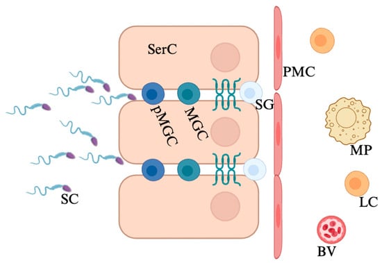 - Kaur, G.; Wright, K.; Verma, S.; Haynes, A.; Dufour, J.M. The Good, the Bad and the Ugly of Testicular Immune Regulation: A Delicate Balance Between Immune Function and Immune Privilege. In Molecular Mechanisms in Spermatogenesis; Cheng, C.Y., Sun, F., Eds.; Springer International Publishing: Cham, Switzerland, 2021; pp. 21–47, Advances in Experimental Medicine and Biology. [Google Scholar] [CrossRef]