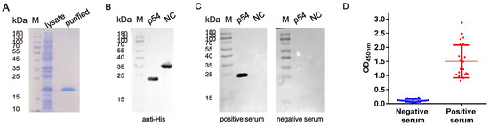 - Cao, Y.; Han, D.; Zhang, Y.; Zhang, K.; Du, N.; Tong, W.; Li, G.; Zheng, H.; Liu, C.; Gao, F.; et al. Identification of one novel epitope targeting p54 protein of African swine fever virus using monoclonal antibody and development of a capable ELISA. Res. Vet. Sci. 2021, 141, 19–25. [Google Scholar] [CrossRef] [PubMed]