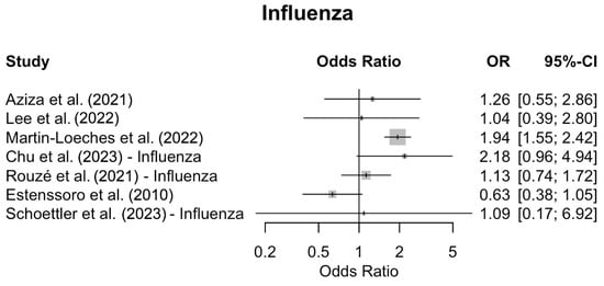 - Arranz-Herrero, J.; Presa, J.; Rius-Rocabert, S.; Utrero-Rico, A.; Arranz-Arija, J.Á.; Lalueza, A.; Escribese, M.M.; Ochando, J.; Soriano, V.; Nistal-Villan, E. Determinants of Poor Clinical Outcome in Patients with Influenza Pneumonia: A Systematic Review and Meta-Analysis. Int. J. Infect. Dis. 2023, 131, 173–179. [Google Scholar] [CrossRef]