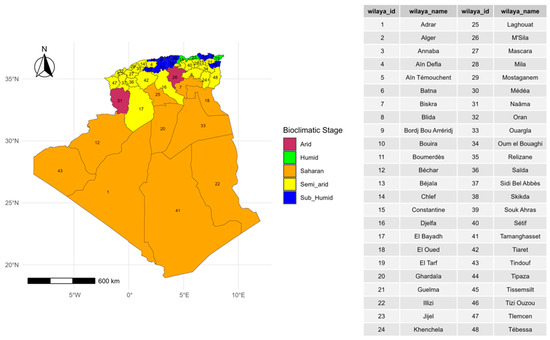 Distribution of bioclimatic stages by wilaya in Algeria.