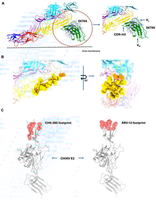- Zhou, Q.F.; Fox, J.M.; Earnest, J.T.; Ng, T.S.; Kim, A.S.; Fibriansah, G.; Kostyuchenko, V.A.; Shi, J.; Shu, B.; Diamond, M.S.; et al. Structural basis of Chikungunya virus inhibition by monoclonal antibodies. Proc. Natl. Acad. Sci. USA 2020, 117, 27637–27645. [Google Scholar] [CrossRef] [PubMed]