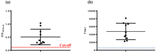 3.4. Detection of Serum Samples from Laboratory Immunized Chickens