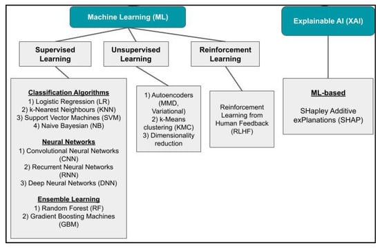 Overview of AI and ML techniques used in infectious disease management, classified into supervised learning, unsupervised learning, reinforcement learning, and Explainable AI.