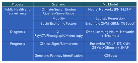 An effective integration of public health surveillance, diagnosis, and prognosis is critical for controlling infectious diseases. Given that most infectious diseases are diagnosed because of physiological abnormalities observed by clinicians [43], the current diagnosis and treatment solutions will largely depend on the clinician’s competencies and experience. However, over-reliance on individual clinician expertise can contribute to increased workload and potentially impact clinical judgment. In such cases, data-driven diagnosis and prognosis can help reduce the burden of over-reliance on individual clinician expertise, providing more standardized clinical care and assessment to patients. Based on our literature search, we identified that the processes that have the potential for optimization by ML include surveillance, diagnosis, prognosis, and treatment [44].