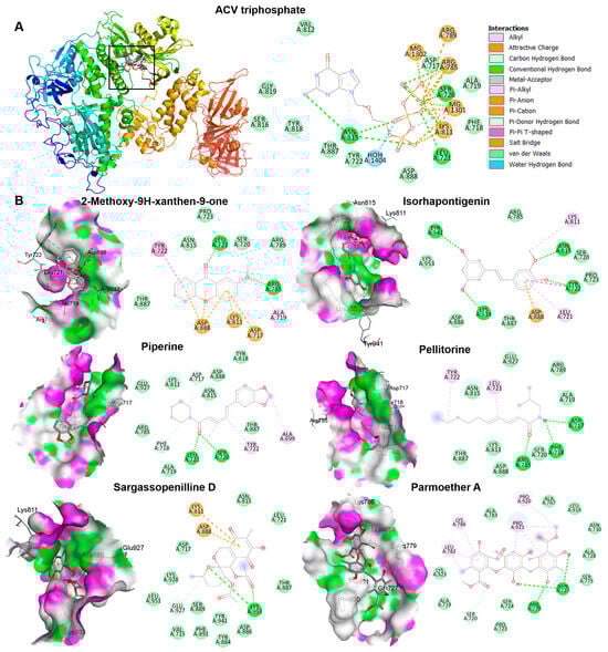 - Rabelo, V.W.-H.; Romeiro, N.C.; de Palmer Paixão, I.C.N.; Abreu, P.A. Mechanism of resistance to acyclovir in thymidine kinase mutants from Herpes simplex virus type 1: A computational approach. J. Biomol. Struct. Dyn. 2020, 38, 2116–2127. [Google Scholar] [CrossRef] [PubMed]