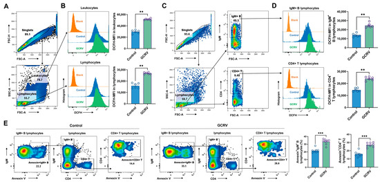 3.4. GCRV-II Induces ROS Production and Apoptosis in IgM+ B and CD4+T Lymphocytes