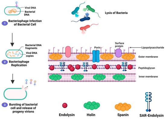 - Khan, F.M.; Rasheed, F.; Yang, Y.; Liu, B.; Zhang, R. Endolysins: A new antimicrobial agent against antimicrobial resistance. Strategies and opportunities in overcoming the challenges of endolysins against Gram-negative bacteria. Front. Pharmacol. 2024, 15, 1385261. [Google Scholar] [CrossRef] [PubMed]
