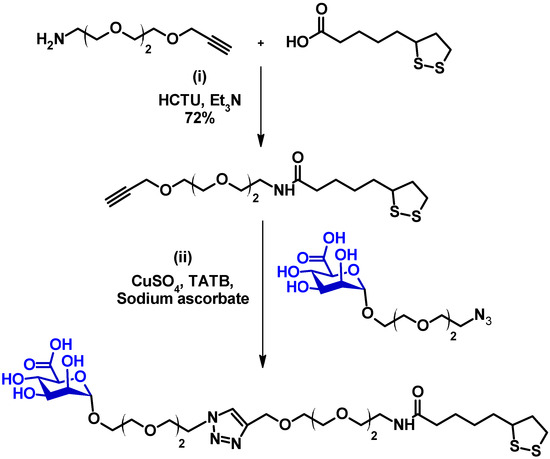 2.3. Synthesis of LA-EG2-ManA [14,19,20,21]