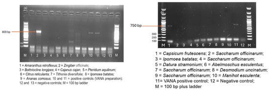 - Siljo, A.; Bhat, A.I.; Biju, C.N. Detection of Cardamom mosaic virus and Banana bract mosaic virus in cardamom using SYBR Green based reverse transcription-quantitative PCR. VirusDisease 2013, 25, 137–141. [Google Scholar] [CrossRef][Green Version]