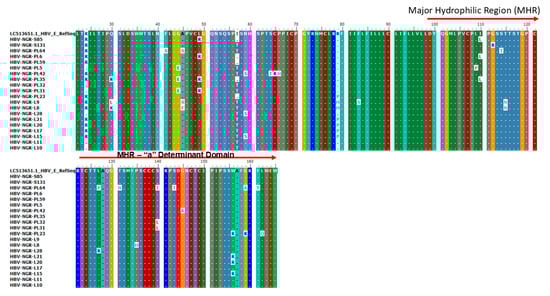 3.3. Mutations Identified in MHR and the “a” Determinant Domain of S Gene Sequences