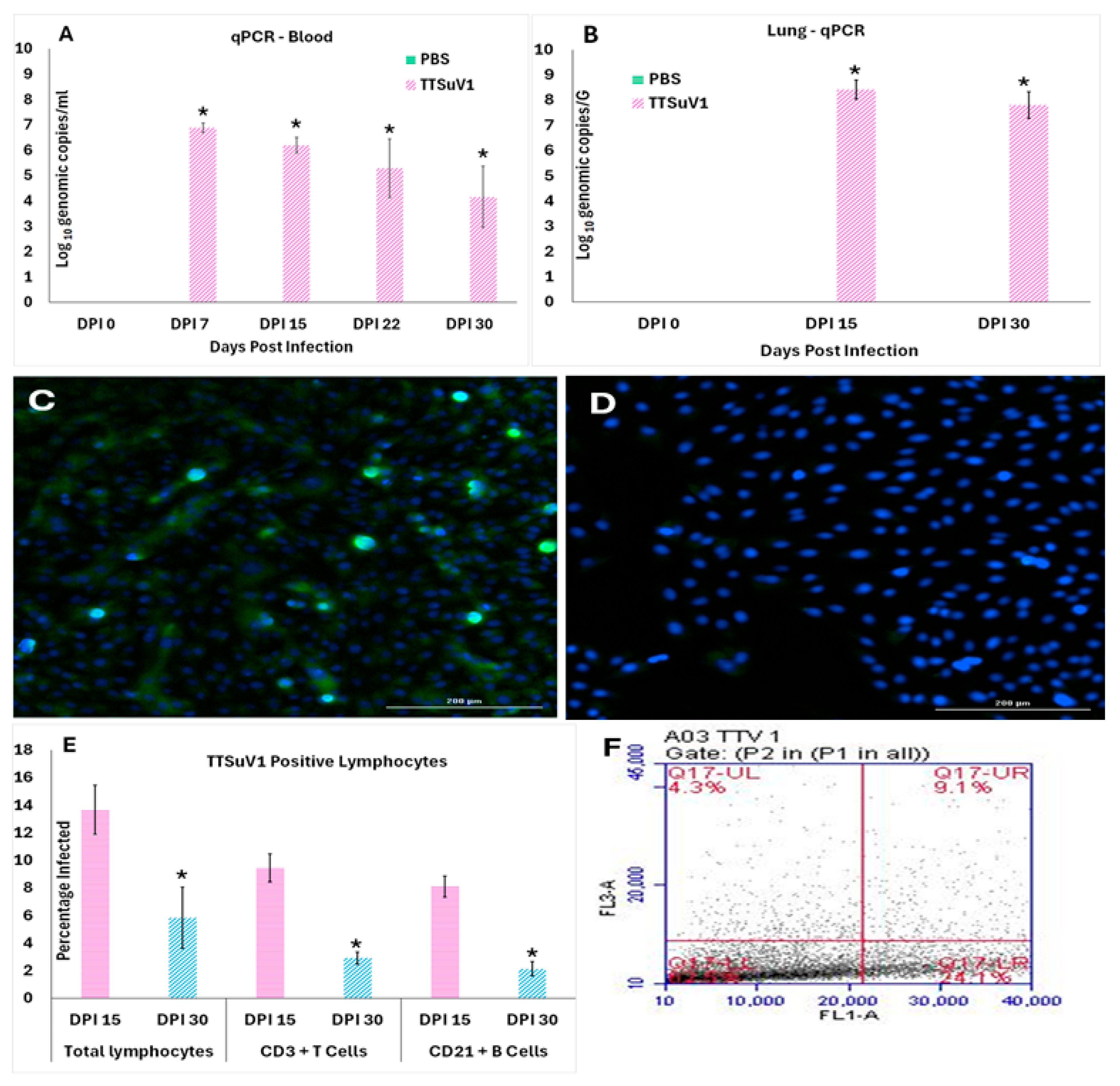 2.8. Flow Cytometry for the Detection of TTSuV1 Antigen and Changes in Lymphocyte Counts