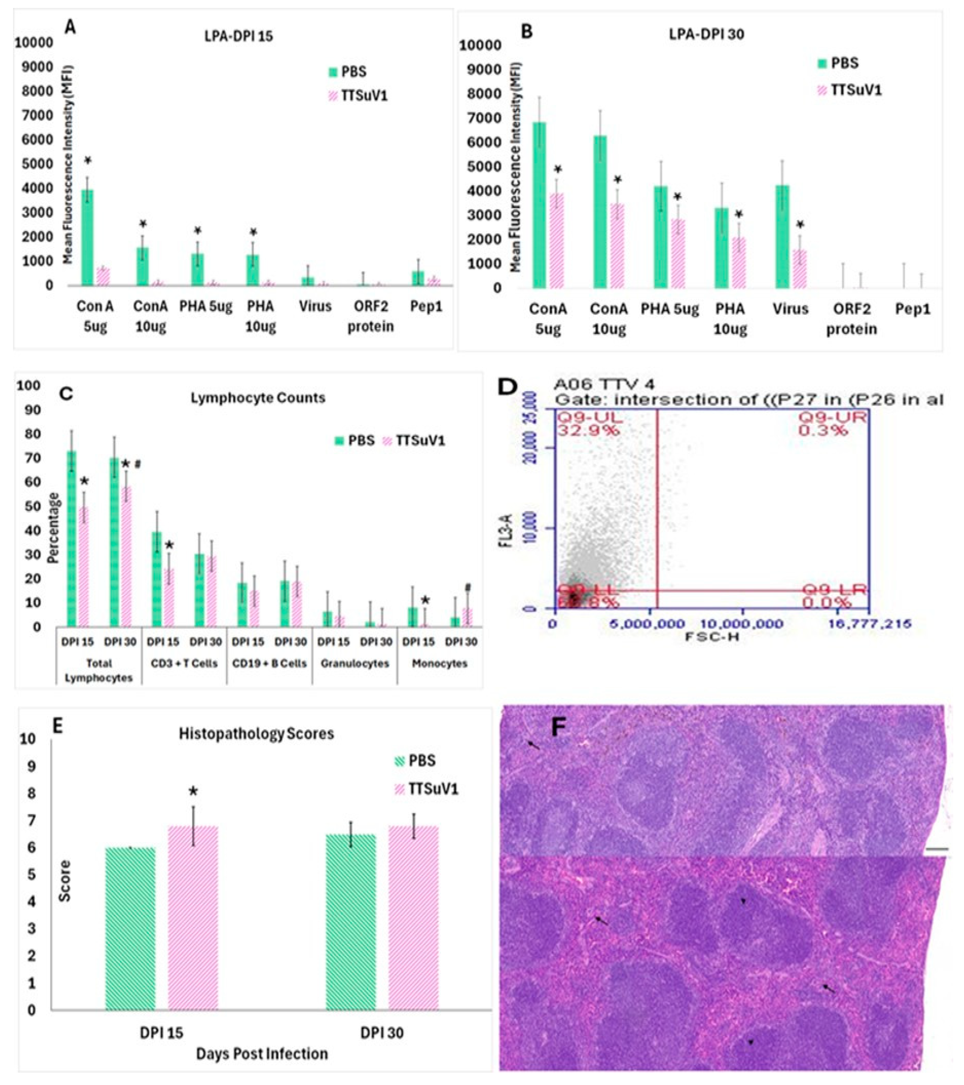 3.2. Infection with TTSuV1 Diminishes Lymphocyte Function