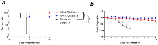 3.5. HA1–AP205dim Vaccination Protects Mice Against Lethal Influenza Challenge
