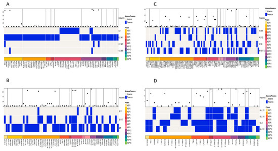 A comparison of the structural proteins of the Omicron variant and its sublineages detected in the study area showed the highest number of amino acid changes in the E, M, N, and S proteins. The S protein exhibited the highest number of mutations, followed by the N, M, and E proteins, respectively. Of the mutations, the following occurred with the highest frequency among the sequences classified as the Omicron variant: G142D, G339D, S373P, S375F, K417N, S477N, T478K, E484A, Q493R, Q4989R, N501Y, Y505H, D614G, H655Y, N679K, P681H, N440K, N764K, D796Y, Q954H, and N969K. Among the eight mutations observed in the N protein, six of them had a high frequency of occurrence. This included P13L, E31del, R32del, S33del, R203K, and G204R. The M protein of the virus had two mutations with a high frequency of occurrence (Q19E and A63T), while the E protein had a T9I mutation with a high frequency of occurrence (Figure 4D). However, the analysis of mutations in the structural proteins (E, M, N, and S) across all samples in the study identified D614G in the S protein as the most abundant mutation.