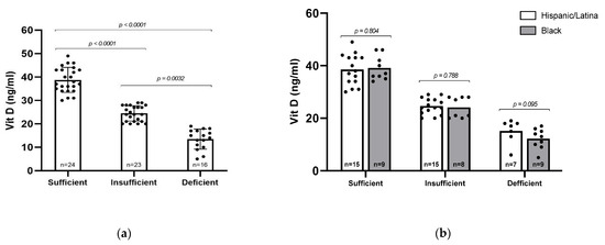 4.3. EBV Status, Vitamin D, and Ethnicity
