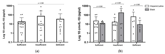 3.5. cmvIL–10 Versus Vitamin D Levels and Ethnicity