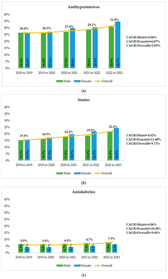 APA StyleTrisolini, P., Cammarota, S., Citarella, A., Fogliasecca, M., Alicchio, V., Antonacci, S., Giannini, R., Lombardi, R., Piccoli, M., Pomarico, F., Procacci, C., Siniscalco, A., Spennato, S., Saracino, A., & Lo Caputo, S. (2025). Antiretroviral Adherence and Use of Antihypertensives, Statins, and Antidiabetics Among Elderly People with HIV: A 5-Year Real-World Study in Southern Italy. Viruses, 17(9), 1212. https://doi.org/10.3390/v17091212