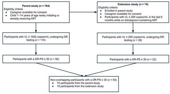 - Khamadi, S.A.; Bahemana, E.; Dear, N.; Mavere, C.; George, F.; Kapene, R.; Papianus, G.; Willoughby, W.; Chambers, J.; Ganesan, K.; et al. Factors Associated With Viral Suppression and Drug Resistance in Children and Adolescents Living With HIV in Care and Treatment Programs in Southern Tanzania. J. Pediatr. Infect. Dis. Soc. 2023, 12, 353–363. [Google Scholar] [CrossRef]