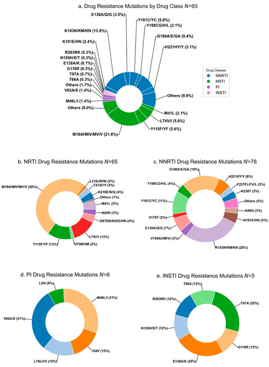 - Wensing, A.M.; Calvez, V.; Ceccherini-Silberstein, F.; Charpentier, C.; Gunthard, H.F.; Jacobsen, D.M.; Paredes, R.; Shafer, R.W.; Richman, D.D. 2025 update of the drug resistance mutations in HIV-1. Top. Antivir. Med. 2025, 33, 457–473. [Google Scholar]