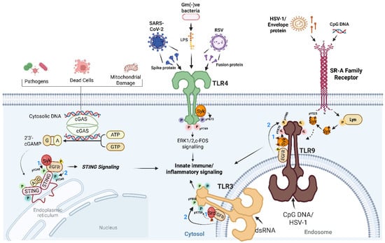 4. Salauddin, M.; Bhattacharyya, D.; Samanta, I.; Saha, S.; Xue, M.; Hossain, M.G.; Zheng, C. Role of TLRs as signaling cascades to combat infectious diseases: A review. Cell. Mol. Life Sci. 2025, 82, 122. [Google Scholar] [CrossRef] [PubMed]