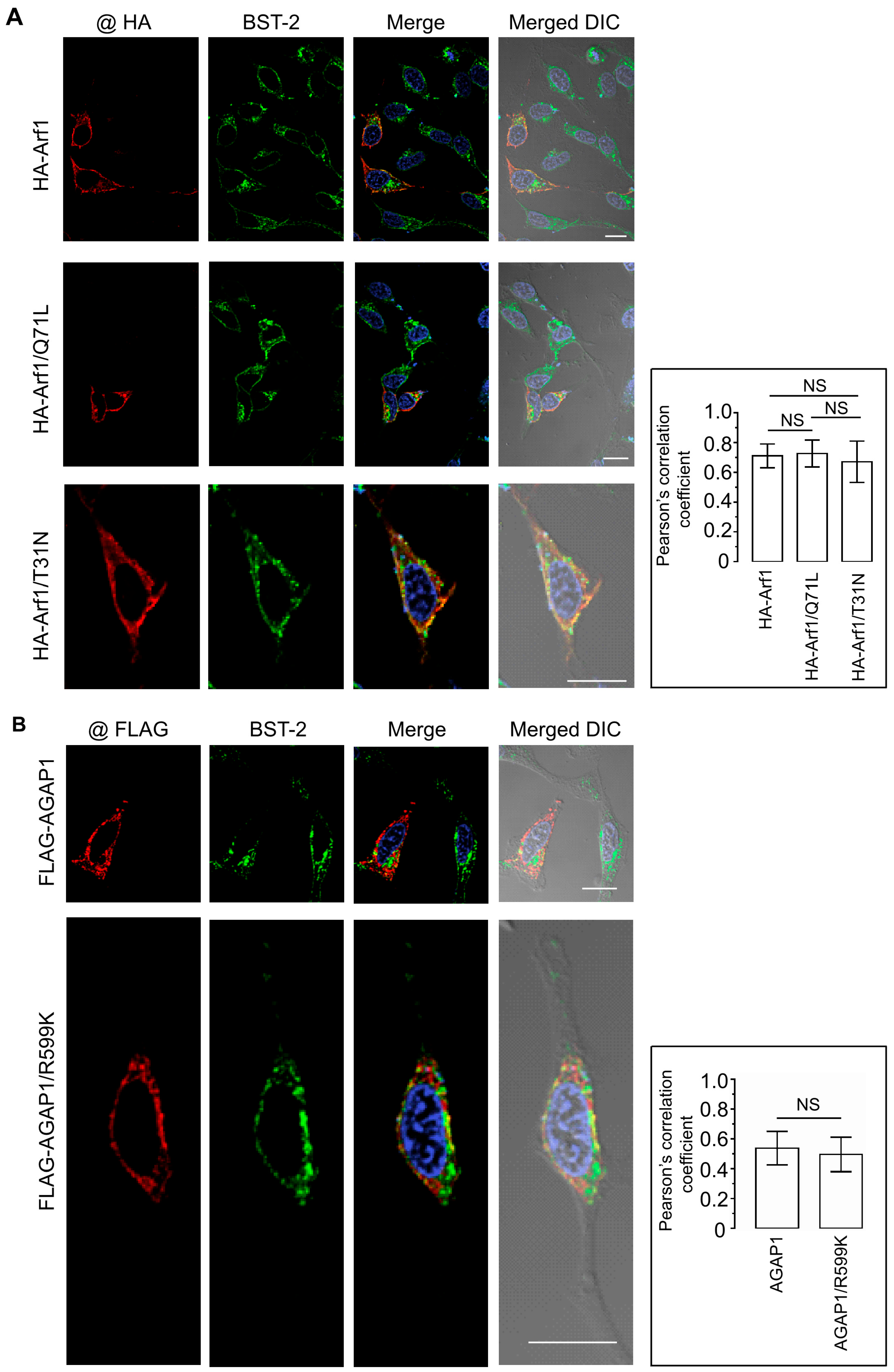 Figure 7). Likewise, AGAP1 expression did not affect BST-2 localization (