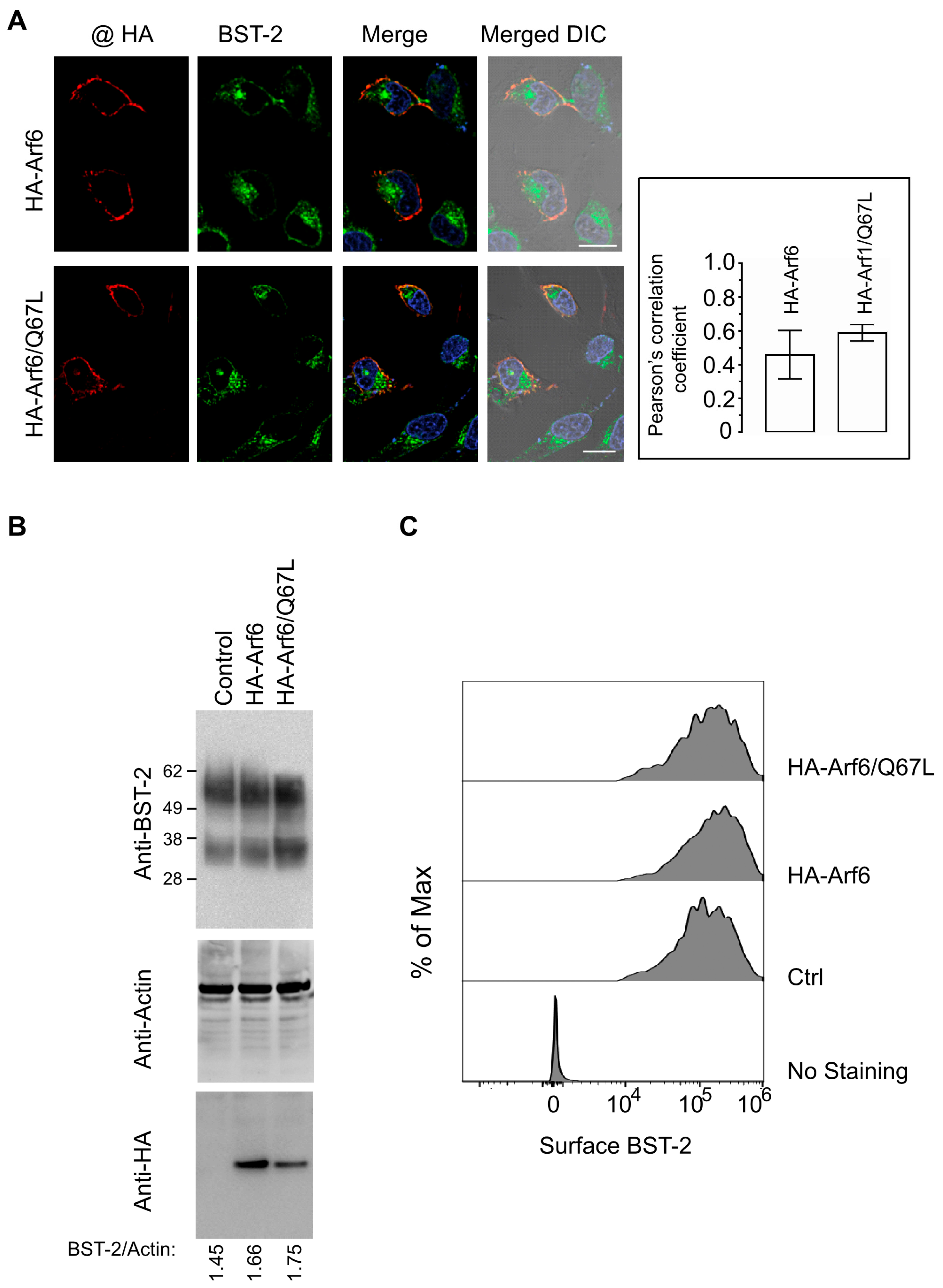 Figure 7C), indicating that Arf6 activation does not affect BST-2 trafficking to the plasma membrane.