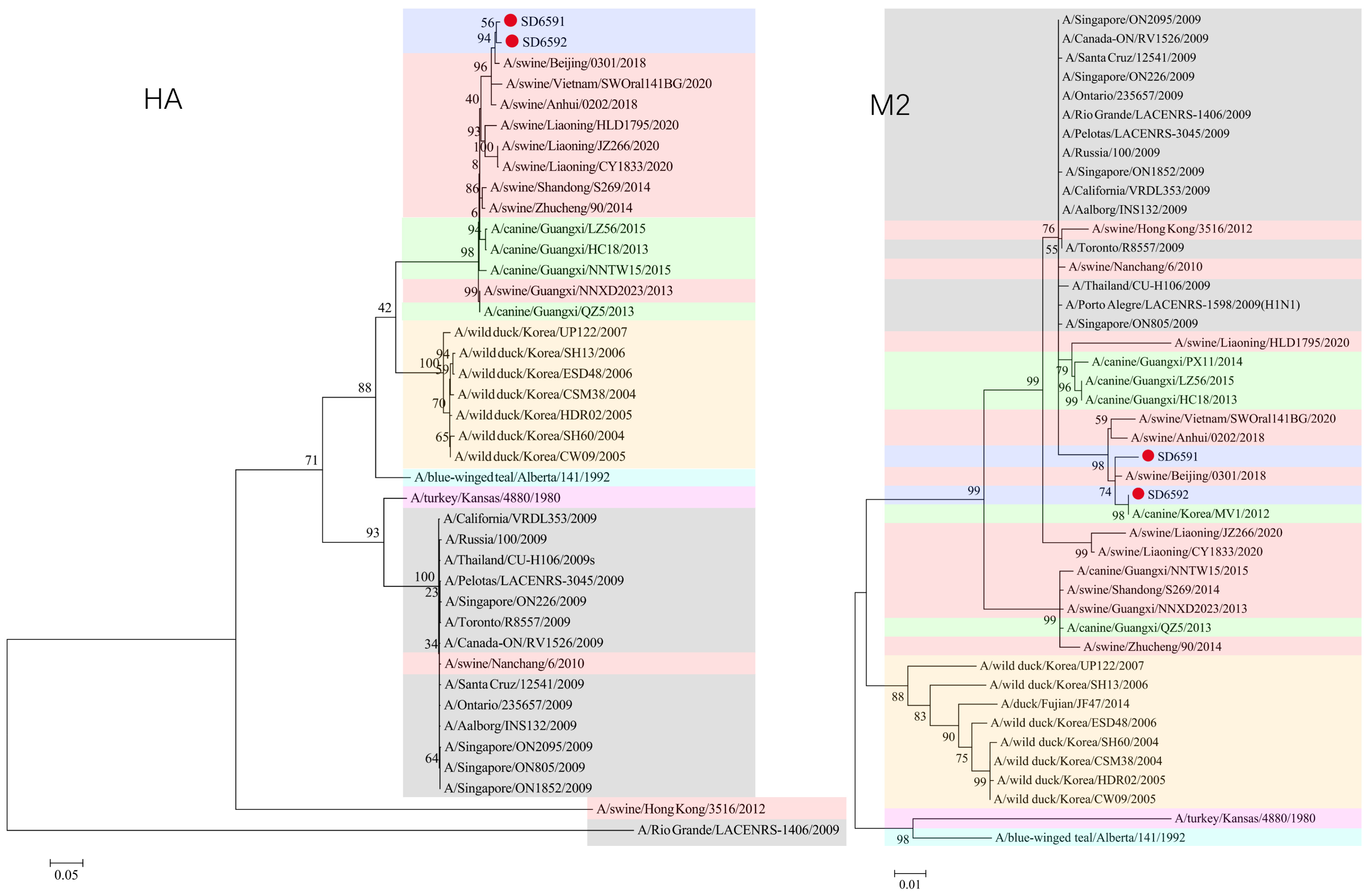 | HA | A/swine/China/Qingdao/2018(H1N1) | MK587714 | 92.76% |