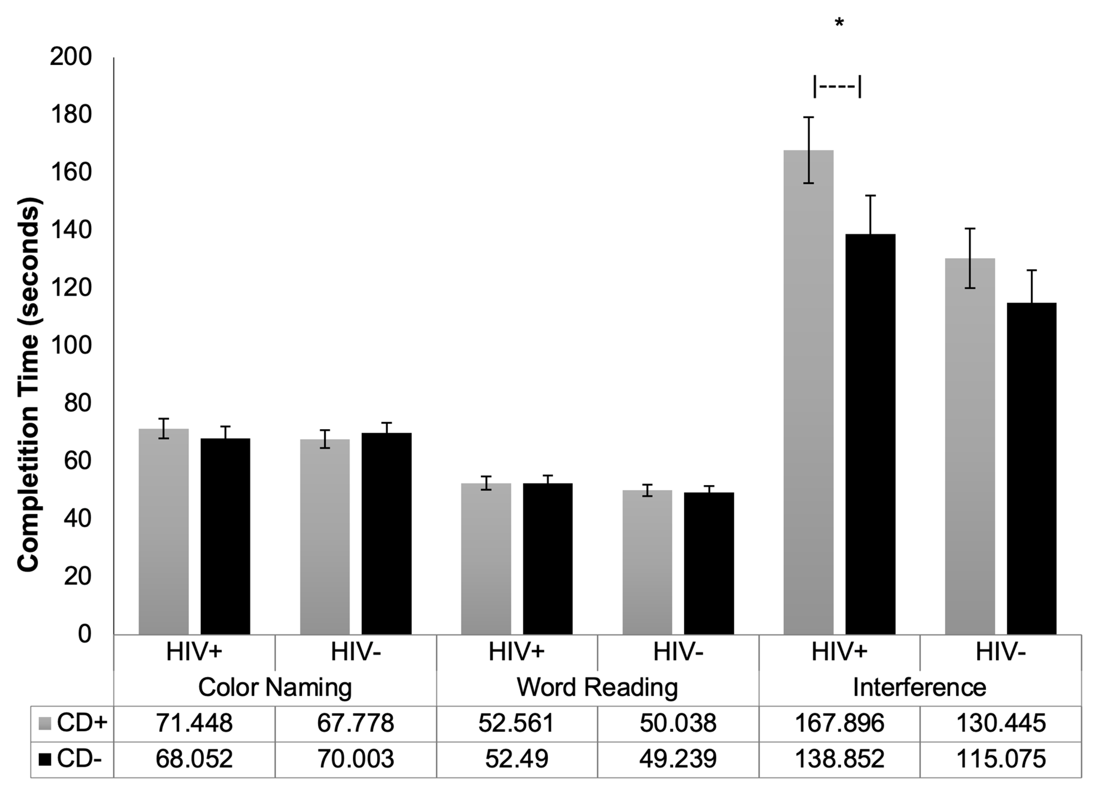 APA StyleNigro, S. E., Wu, M., Salmeron, B. J., Islam-Souleimanova, S., Lauer, E., Juliano, A. C., Lord, A. R., Sabet, A., Lu, L. H., Napier, T. C., French, A. L., Aizenstein, H. J., Yang, Y., & Yang, S. (2026). Cognitive Flexibility and Inhibition Deficits in HIV and Cocaine Dependence: Evidence from Stroop and Trail Making Tests. Viruses, 18(1), 122. https://doi.org/10.3390/v18010122