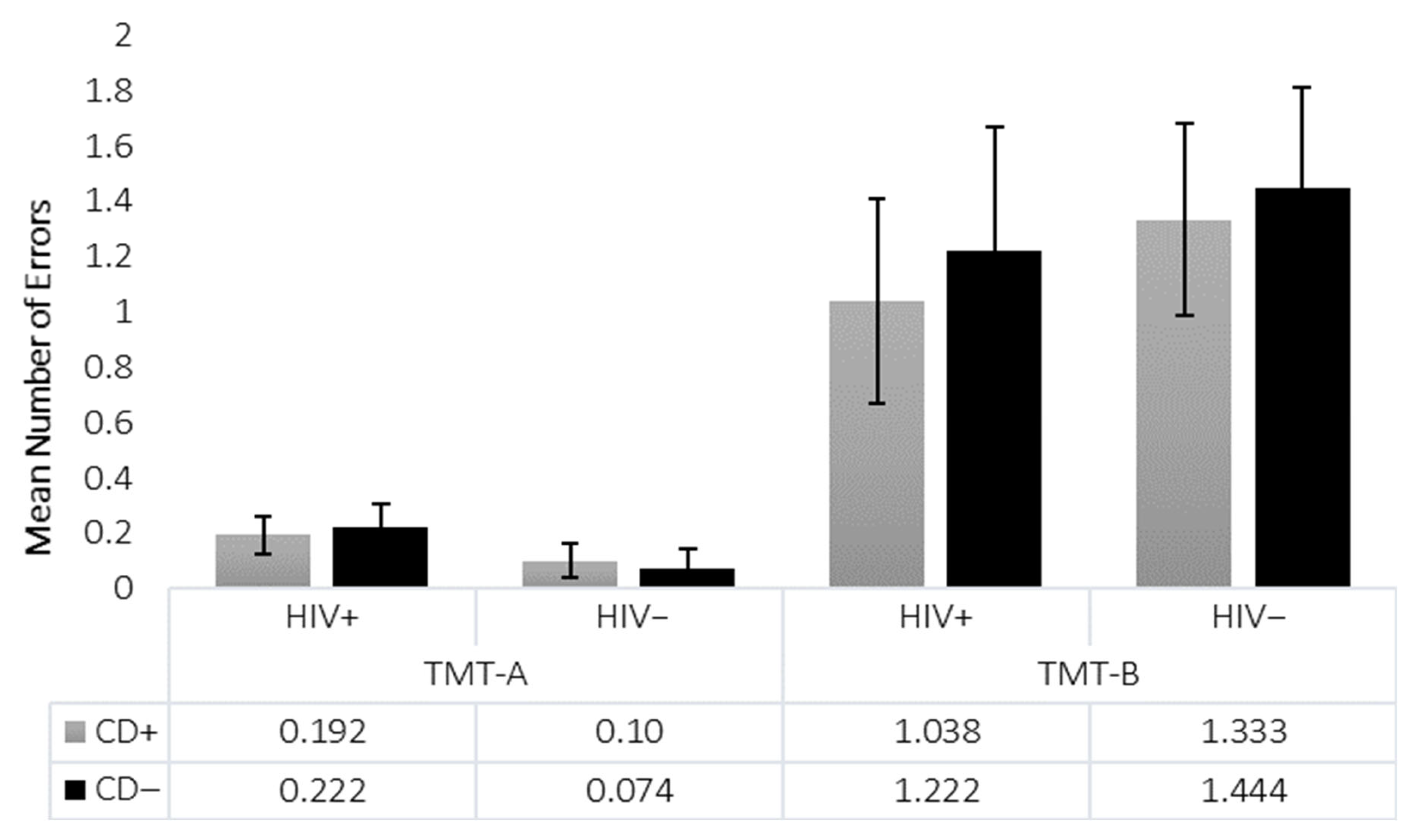 - Walker, K.A.; Brown, G.G. HIV-associated executive dysfunction in the era of modern antiretroviral therapy: A systematic review and meta-analysis. J. Clin. Exp. Neuropsychol. 2018, 40, 357–376. [Google Scholar] [CrossRef] [PubMed]