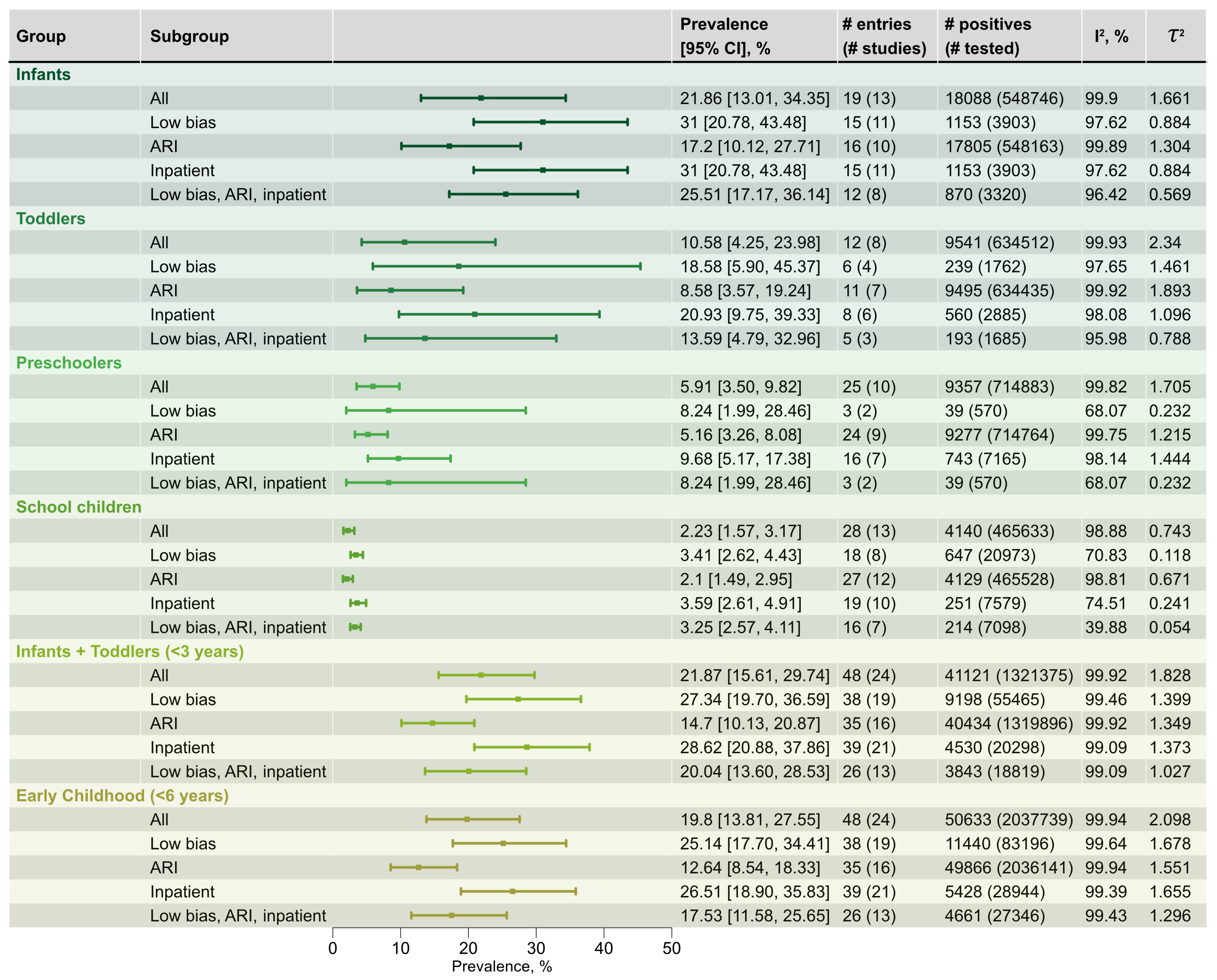 | Tatochenko | 2010 | September 2008–April 2009 | <18 y | In | Russia: Moscow, St. Petersburg, Tomsk | LRTI | [101] |